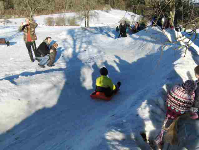 Auf der toll präparierten Rodelbahn hatten die Kinder ihren Spass. Selbst bis in die Nacht waren viele Erwachsene auf der Rodelbahn aktiv.